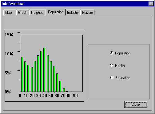 Most of the other, smaller windows, such as the Map and Population windows,