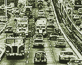 Science, industry and commercial interests came together in ^C1, where civic leaders demonstrated what has officially been named a "highway". At first glance, the new concept seems little more than parallel roads glued next to each other. ^C1 State Civil Engineer John Mathusan explains the difference. "On a road, anyone can build a driveway or cow-crossing or what-all. All these things require traffic lights, stop signs, and cross-walks. A highway has special lanes for entrance and exit. No stop signs or traffic lights. It's possible to drive from one end of the state to the other without stopping."